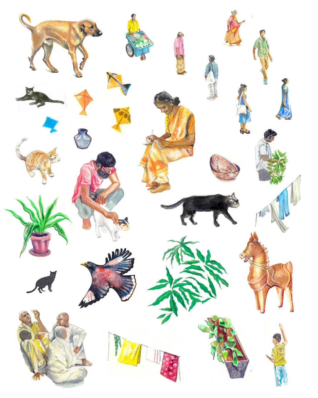 Using richly illustrated, hand-drawn details and an interactive search-and-find format, the child is encouraged to explore and observe their own neighbourhoods and the stories found in them. The books’ storyline follows the adventures of the wandering cat, Mari, and will address topics like sustainability, conservation and climate change. The artwork serves as an authentic record of life and livelihoods in modern day India with depictions of nature, busy street scenes, and domestic interiors for children to explore in detail.